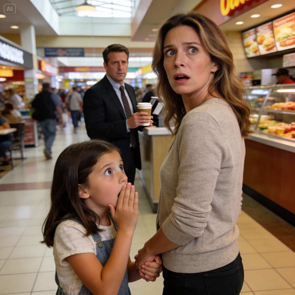 Lily se lanzó hacia adelante antes de que pudiera reaccionar. “¡Papá!”, gritó tan fuerte que medio centro comercial se quedó mirándola. Él dejó caer el vaso y la atrapó automáticamente, moviendo los brazos con la fluidez familiar de un padre que lo ha hecho mil veces. Por un segundo, se miraron, las manos de él sobre los hombros de ella, sus rostros a centímetros de distancia.