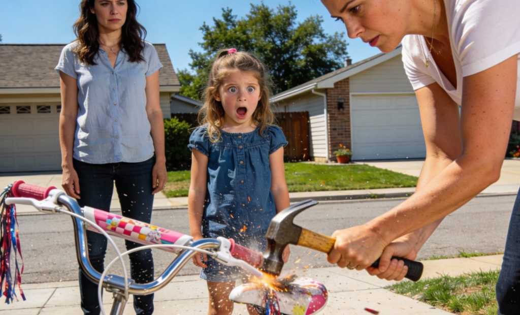 Mi hermana destrozó la bicicleta nueva de mi hija de seis años con un martillo, justo delante de sus ojos. No fue un accidente. No fue un momento de pérdida de control. Fue deliberado, lento y con la intención de hacerle daño. Lily acababa de terminar de montar en la entrada, con las mejillas sonrojadas, la risa aún flotando en el aire. La bicicleta era rosa, con serpentinas en los manillares y una campanilla que le encantaba tocar. Había ahorrado durante meses para comprarla.