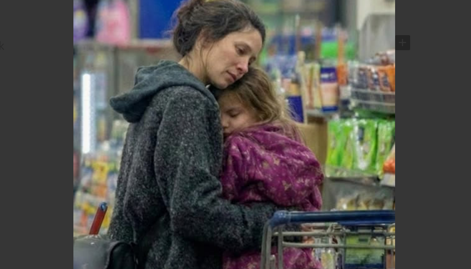 Se aferró al abrigo de su madre como si fuera lo único seguro del mundo. En su carrito solo había leche y pan. Los ojos de la madre se llenaron de lágrimas al agacharse y acariciar el cabello de su hija.
