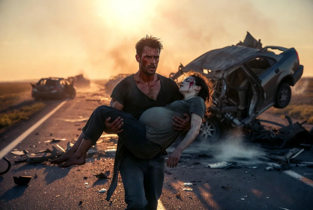Vi a una mujer. Inconsciente, atrapada entre los hierros retorcidos del asiento del copiloto, con el cinturón de seguridad aún ajustado. Su cabello rubio se extendía sobre el airbag desplegado. Estaba pálida, con un hilo de sangre brotando de su frente, que se mezclaba con el polvo del accidente.