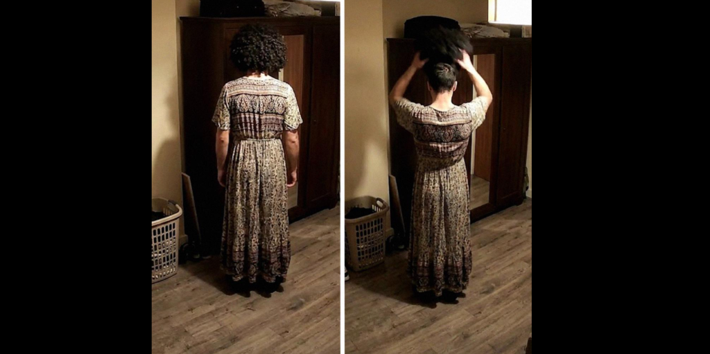 La peluca. El vestido. Las gafas de sol…