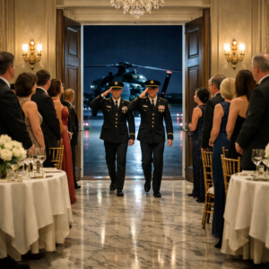 —Teniente General Cole —dijo, con una voz que rompió el silencio atónito con absoluta claridad—. Señora, el Pentágono requiere su presencia inmediata. La situación se ha agravado. Se requiere un informe estratégico urgente.Las palabras detonaron como una bomba en el silencio conmocionado. Se oyeron jadeos. Una copa de vino se hizo añicos contra la piedra. El teléfono de alguien cayó al suelo, olvidado.