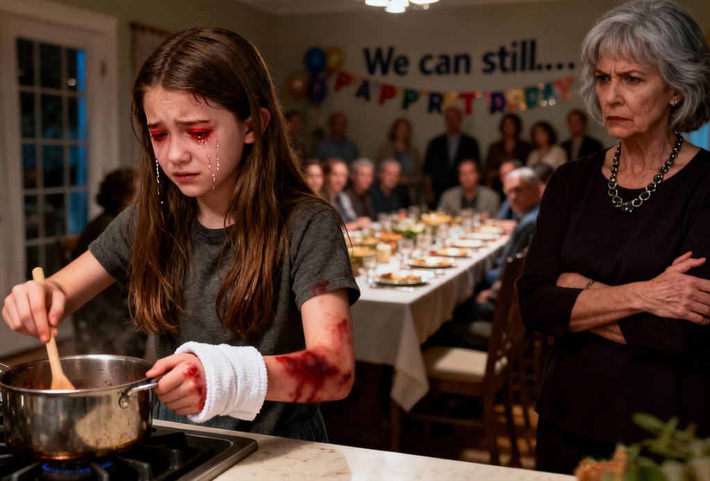 Mi hija de 15 años sufrió quemaduras de segundo grado mientras ayudaba en la cocina antes de la cena de cumpleaños de mi madre. Mi madre simplemente levantó la vista y dijo, fría como el hielo: «Todavía puede remover con la otra mano». Luego terminó de cocinar para dieciocho invitados, como si nada hubiera pasado.