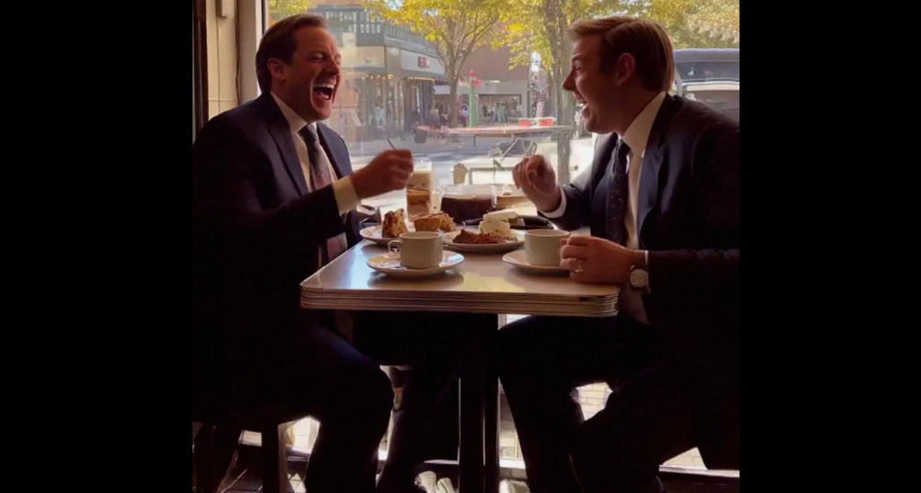“Dos cafés”, dijo el primero, agitando la mano como si yo fuera un sirviente. “Solo, igual que tus perspectivas laborales”.
