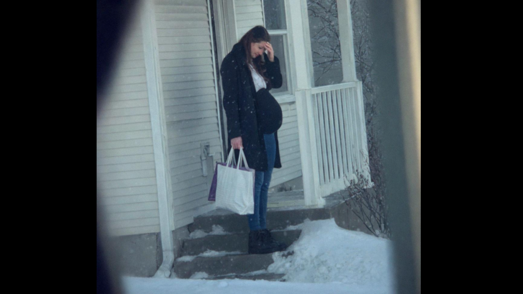 La gente se quedó mirando, probablemente preguntándose por qué una mujer embarazada estaba afuera con ese clima.