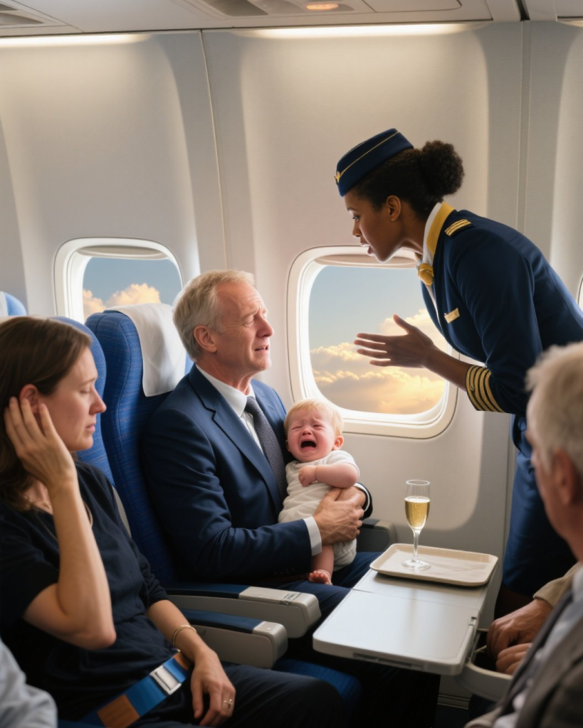 El llanto penetrante rasgó el aire reciclado de primera clase como una sirena, ahogando el suave zumbido de los motores del Boeing 787. Harrison Reed, director ejecutivo de Reed Enterprises y multimillonario hecho a sí mismo, sintió todas las miradas clavadas en la espalda de su traje de seda italiana mientras el rostro de su hija Olivia, de seis meses, se contraía hasta adquirir un tono carmesí imposible. Tres horas después del despegue del vuelo transatlántico, la bebé no había dejado de llorar.