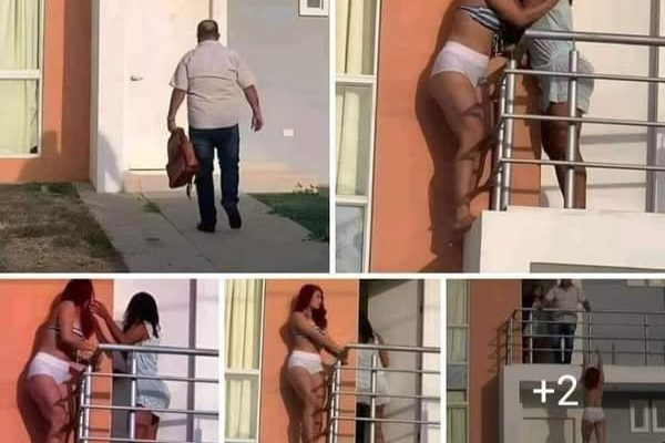 El incidente ocurrió en lo que parece ser un complejo residencial. En las fotografías, se observa a un hombre con camisa beige y maletín caminando hacia la puerta del apartamento. Mientras tanto, desde el balcón del segundo piso, dos mujeres —una en ropa interior y la otra en pijama— observan la llegada del hombre con evidente preocupación.