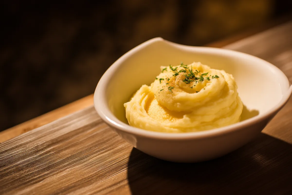 El puré de patatas estaba bien esponjoso, con trocitos de mantequilla derritiéndose en el centro como estrellas amarillas. Y ahí estaba: mi pastel de cumpleaños.