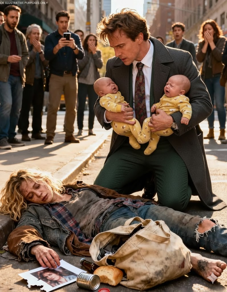 Mientras la ambulancia se alejaba, Pedro quedó allí, inmóvil en medio de la calle, sosteniendo a los dos bebés en brazos, rodeado de flashes de curiosos —