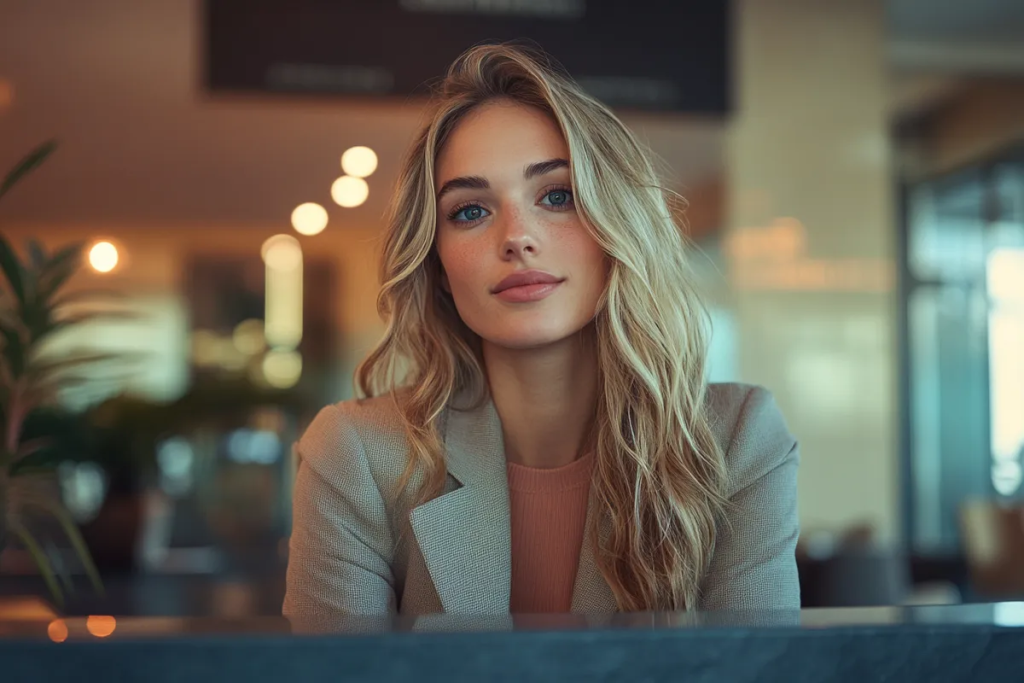 Una mujer de pie en el vestíbulo de un hotel | Fuente: Midjourney