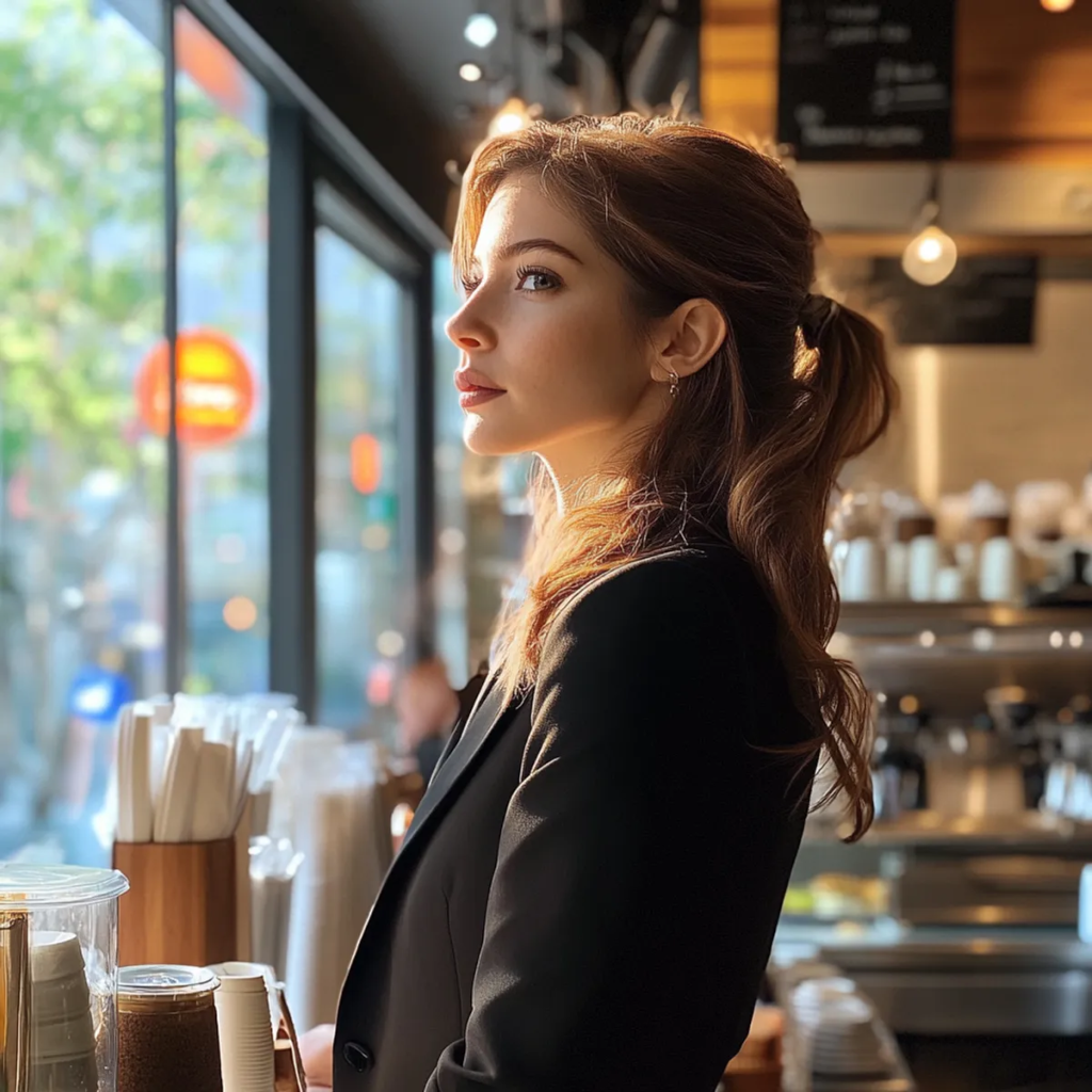 Una mujer en un café | Fuente: Midjourney