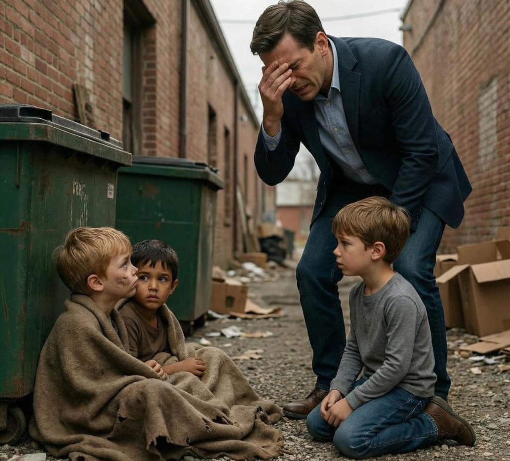 Jonah, de ocho años, deambulaba por detrás de un centro comercial, arrodillado junto a dos niños pequeños acurrucados cerca de un contenedor de basura. Andrew lo siguió, molesto al principio, hasta que la imagen que tenía ante él le hizo tambalear el mundo.