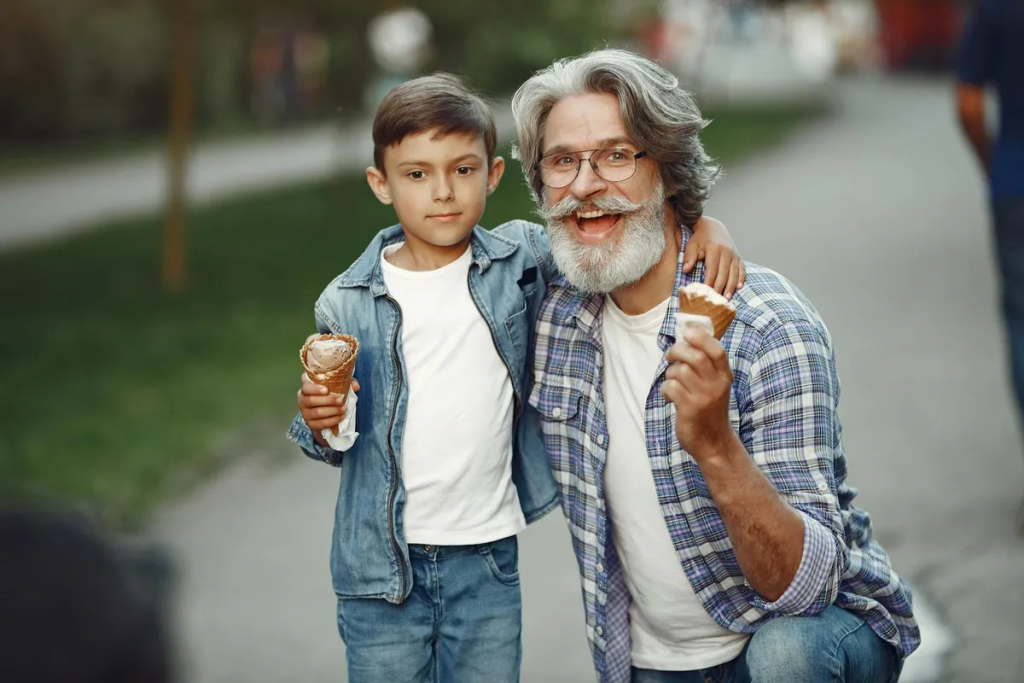 Un niño hablando con su abuelo | Fuente: Midjourney